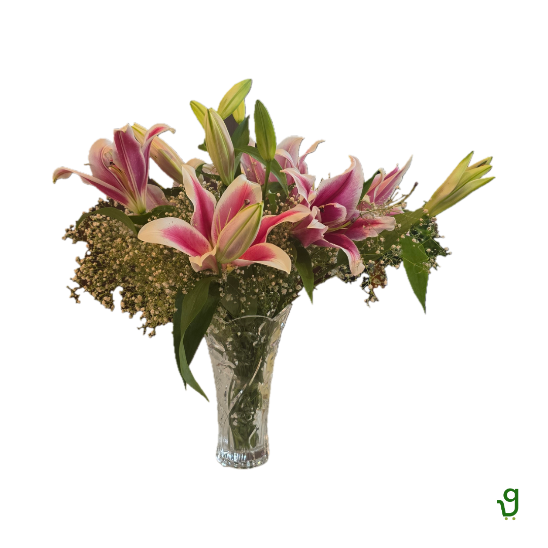 Pink Lilies 5 Stalks & Fillers Vase Decor